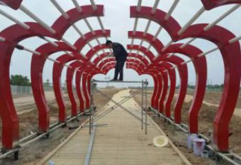 隧道大門雕塑廠家,烤漆美陳雕塑,抽象建筑設計
