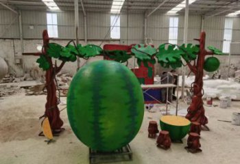 總之,西瓜作為一種文化藝術品,具有非常豐富的寓意和象征意義,既體現(xiàn)了中國傳統(tǒng)文化的內涵,又將瓜果之美和玉器之美融合在一起,成為了一種獨具特色的創(chuàng)意藝術品。越凱雕塑多年專注于雕塑制作,常年提供不銹鋼、支持玻璃鋼、銅、不銹鋼雕塑等來圖定制。